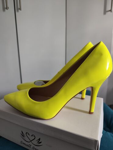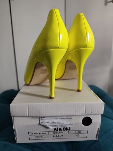 Upadljivo elegantne salonke u jarkoj neon žutoj, idealne za svečane prilike i večernje kombinacije. Klasična silueta sa špicem ističe liniju stopala, dok sjajna završnica daje moderni akcenat. Veličina i specifikacije jasno naznačene na kutiji i đonu.