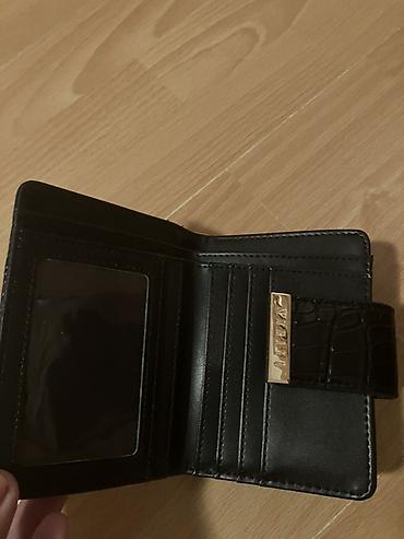 - Unutrašnjost: prozirni džep za dokument/ID, više ležišta za kartice, dodatne pregrade za novčanice i račune