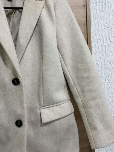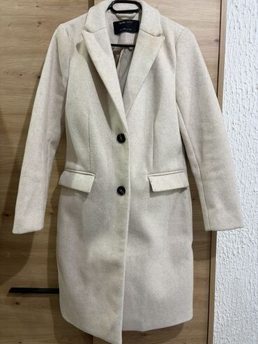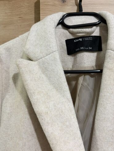 Sinsay ženski kaput - Model: Outwear Collection - Veličina: XS / EUR 34 - Boja: svetlosiva (melanž) - Kroj: klasičan, ravna linija, dužina do iznad kolena - Kopčanje: dva crna dugmeta napred - Rev...