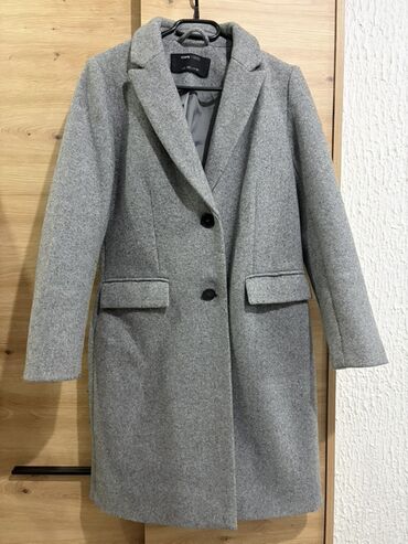 Ženski kaput Sinsay – model iz Outerwear kolekcije - Veličina: XS (EUR 34) – naveden na etiketi - Boja: krem/bež - Kroj: klasičan, ravna silueta do iznad kolena - Zakopčavanje: dva crna dugmeta na...