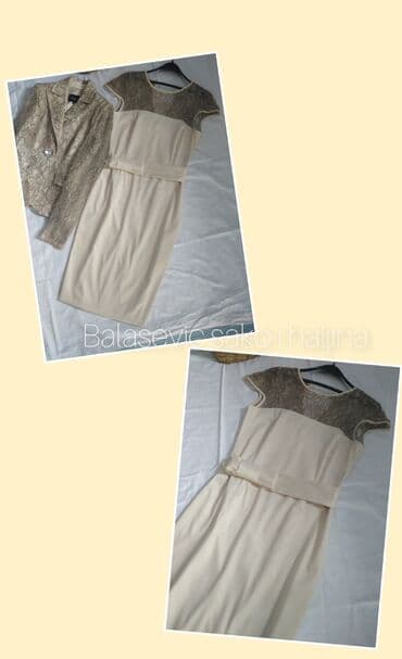 Balasevic komplet haljina i sako (blejzer). Haljina veličine 40. Dužina 105cm, pazuh-pazuh 40cm. Sako broj 38. Vodite se dimenzijama: ramena 35cm, pazuh-pazuh 42cm, dužina 57cm, rukavi 64cm. Komp...+381 60 36506xx