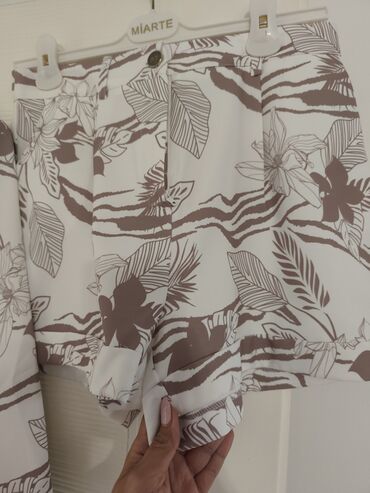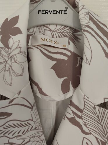 ŠarenoKomplet sakoa i šortsa marke Noix, veličine 40. Komplet je bele boje sa dezenom tropskog lišća u braon nijansama. Sako je dvorednog kopčanja sa reverima, dok su šorts dubokog struka i ležernog kroja. Idealan za letnje prilike. Kao novo, samo jednom nosen.
