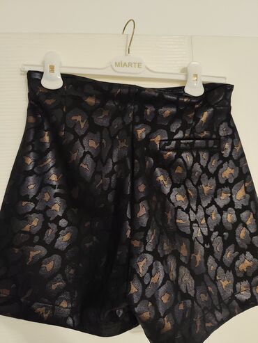 Crni šorts brenda Katrin sa leopard printom i ukrasnim zlatnim dugmadima. Veličina 36. Šorts ima imitaciju kože i pogodan je za večernje izlaske.
