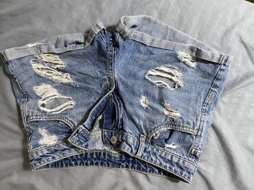 - Model: kratki šorts, “ripped/distressed” stil sa više dekorativnih pohabanih/rupičastih detalja napred