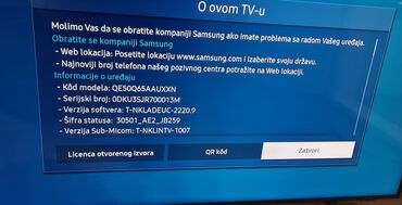 - Prikaz QR koda i opcije licence otvorenog izvora dostupni u meniju TV‑a