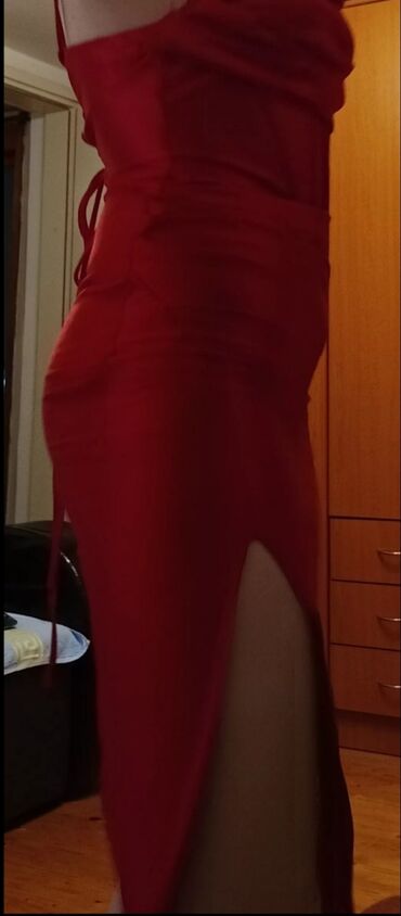 Haljina je kupljena, a nigde nošena nije. Ima korpice, korset na sredini i vezivanje pozadi. Takođe može da se podešava na gornjem delu, kao što se može videti na slici.