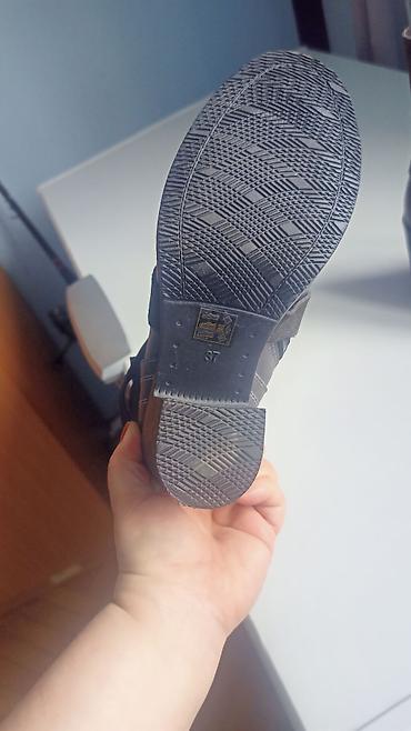 - Materijal: prirodna koža + antilop (oznake na đonu za kožu, antilop i gumeni đon)