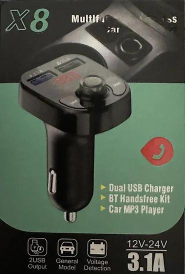Bluetooth FM transmiter MP3 za auto X8 NOVO. Opis proizvoda: Ovaj proizvod je specijalni Bluetooth punjač za automobil koji može prebaciti poziv u hendsfri stanje putem profesionalnih Bluetooth modula sve dok je mobilni telefon opremljen Bluetooth funkcijom.