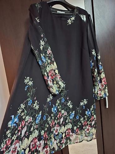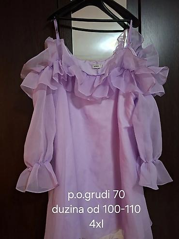 Kratka svečana haljina u pastelno plavoj (mint) boji. - Kroj: A-linija sa bogatom, višeslojnom tutu/suknjom do iznad kolena. - Gornji deo: poluprovidan til sa cvetnim 3D aplikacijama i perlicama; ...