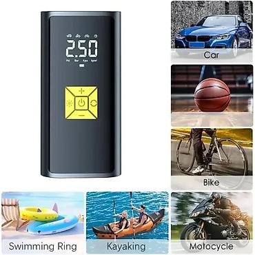 DC dvostruko napajanje: Uživajte u slobodi izbora između bežičnog i pouzdanog napajanja. Električna pumpa za automobil ima ugrađenu punjivu bateriju od 2000*3mAh za 40 minuta bežičnog naduvavanja. Uključeni DC kabl za napajanje od 9,8 stopa povezuje se sa upaljačem u vašem automobilu, osiguravajući naduvavanje čak i ako se baterija isprazni. To je savršeno rešenje za zadovoljavanje vaših potreba za naduvavanjem bilo kada i bilo gde. 160 PSI i 2 puta brže pumpanje guma: Doživite efikasno i brzo pumpanje pomoću našeg prenosivog kompresora za automobil. Opremljen motorom velike brzine koji radi na 30000 obrtaja u minuti i snažnom pumpom, obezbeđuje brz protok vazduha od 12 l/min, dostižući maksimalni pritisak od 150 PSI, dvostruko brže od drugih pumpi za gume. Sa ovom pumpom za automobilske gume, možete naduvati automobilsku gumu dimenzija 205/55 R16 od 0 do 36 PSI za samo 6 minuta, štedeći vam vreme i trud. 4 režima i praćenje pritiska u realnom vremenu: Uživajte u praktičnosti 4 unapred podešena režima naduvavanja za automobile, motocikle, bicikle, lopte. LCD ekran prikazuje unapred podešeni i pritisak u gumama u realnom vremenu. Digitalni pumpač za naduvavanje guma sa inteligentnom funkcijom praćenja pritiska u gumama, pumpa za vazduh u automobilu se automatski isključuje kada se dostigne unapred podešeni pritisak, osiguravajući bezbednost i duševni mir.