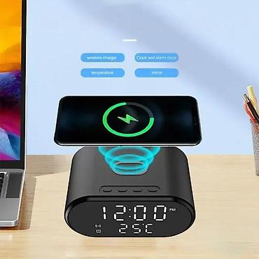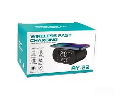 Opis proizvoda: Stoni digitalni sat sa termometrom i wireless punjacem AY-22 Izgled: Bežični punjač-sat sa budilnikom i termometrom Materijal kućišta: ABS plastika Zaštita: