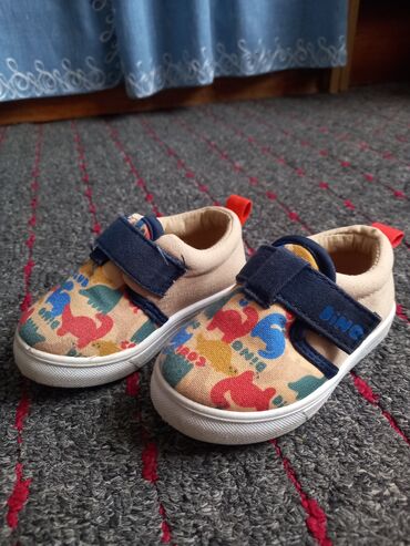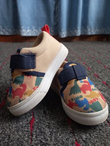 Dečije patike – dva modela 1) Platnene patike sa dinosaurus printom - Gornjište od bež platna sa šarenim dinosaurusima - Tamnoplavi čičak kaiš za lako obuvanje - Mekano postavljen otvor oko članka...3 100 RSD