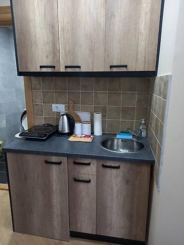 Kuhinja je u obliku slova L, sa modernim frontovima u svetlom drvetu, između elemenata i sledećom opremom: - Ugradna rerna i ploča za kuvanje - Sudopera sa slavinom - Radne površine pune dužine - ...Zlatibor