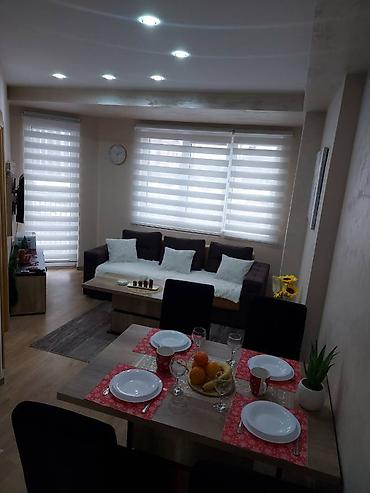 Dvosoban stan – funkcionalan raspored i namešten Opis prostora: - Dnevna soba sa ugaonom/rastegljivom sofom, niskim klub-stolićem, zidnim TV-om i klima uređajem. LED plafonjerka, kružni tepih i za...