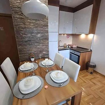 Stan se nalazi u kompleksu Zlatiborski konaci u ulici Bele vode bb, konak 26, na drugom spratu. Stan je potpuno kvalitetno opremljen, sastoji se od dnevnog boravka sa kuhinjom, odvojemom spavacom sobom velikim kupatilom i zasebnim ulaznim hodnikom velicine 39,6 m2. Dnevni boravak kao i spavaca soba imaju po televizor sa kablovskim programo i internetom. Spavaca soba ima veliki americki plakar sa kliznim vratima tako da ima dosta prostora za skladistenje kako garderobe i kofera tako posteljine, takodje i u hodniku ima veliki plakar pogodan sa razne stvari, kuhinja je od medijapana visokog sjaja u beloj boji kombinovana sa orahom kao i plakar, stocic i sto za rucavanje u dnevnom boravku. Kuhinja se sastoji od velikog ugradnog frizidera sa odvojenom ledarom, ugradnom plocom, ugradnom rernom i aspiratorom, velikom keramickom sudoperom i bojlerom. Uredjaji su kvalitetni elektroluksovi, a kuhinja je potpuno opremljena za boravak. Stan takodje ima i terasu sa stocicem i dve stolice. Kompleks poseduje veliki zatvoreni bazen sa spa centrom, nalazise na mirnom mestu i udaljen je od centra 1300m.