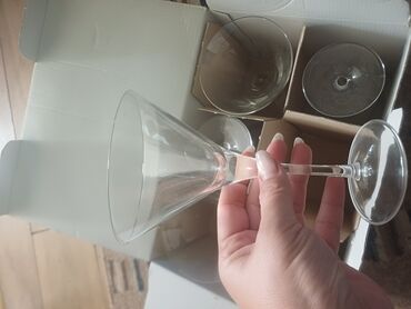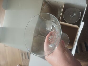 Set od 6 srebrnih/metalnih pehara za liker/vino sa tacnom - Materijal: metal/srebrnasti legirani lim, poliran - Dizajn: klasični pehari sa blago razlivenim obodom i dekorativno upletenim/stilizova...