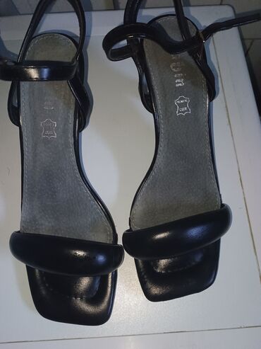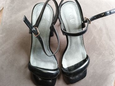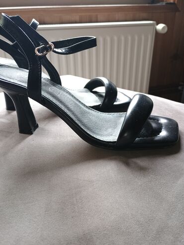 Srednja štiklaCrne sandale broj 38,kao nove obučene samo za jedno slavlje.Unutrašnje gazište 24.5cm,visina štikle 8cm