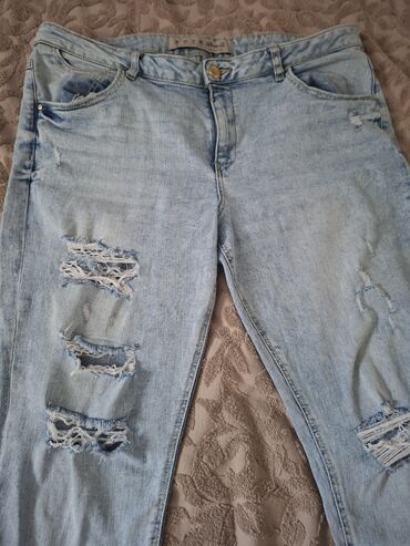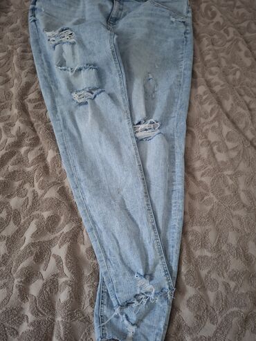Bershka BSK ženske farmerke - Model: skinny/usidženi kroj sa visokim strukom - Boja: sivo isprane (stone wash) - Detalji: duple bočne pruge duž cele nogavice – spolja bela, iznutra crna, sportski ...