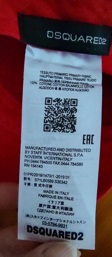 - Brend: DSQUARED2 (unutrašnja etiketa sa QR kodom i podacima o proizvođaču)
