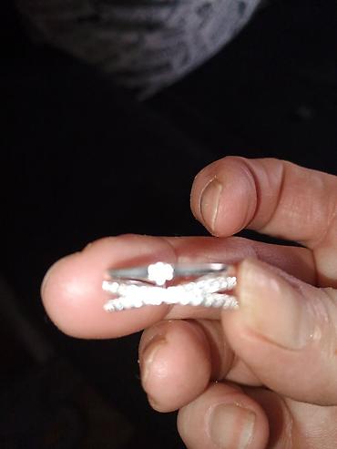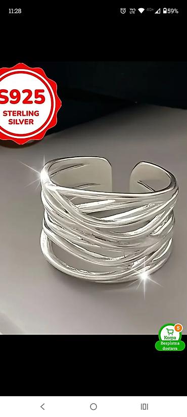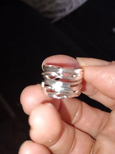 Srebrni , velik i dosta tezak prsten, sa cirkonima(nijedan ne fali), velicina 18mm precnika, boja srebrna, nosen. Stanje kao na slici.