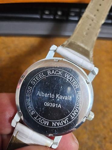 - Bela brojčanica sa minimalističkim indeksima i logo natpisom Alberto Kavalli