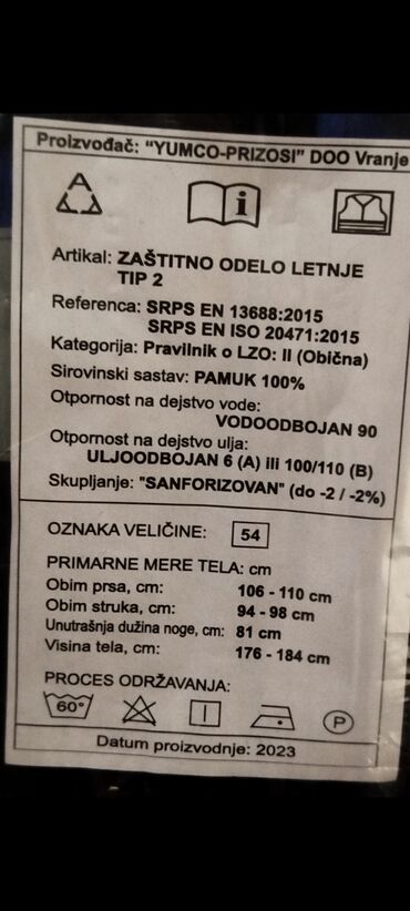 - Standardi: SRPS EN 1 SRPS EN ISO 20471:2015