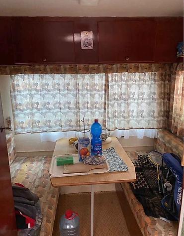 Sa obe strane su po dve klupe i sto koji se pretvaraju u ležaj.