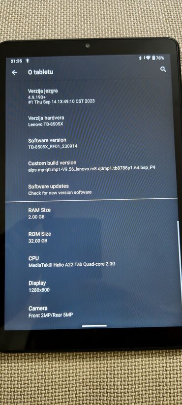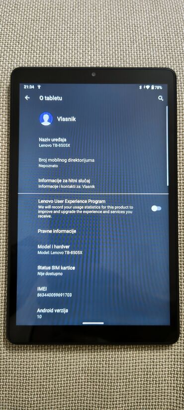 Xpad 103 Android tablet - Model: Xpad 103 (oznake na poleđini) - Ekran: oko 10 inča, bela maska, kapacitivni multitouch - Operativni sistem: Android 4.2.2 (prikazano u “O tabletu”) - Jezik interfe...