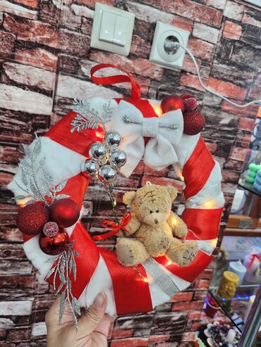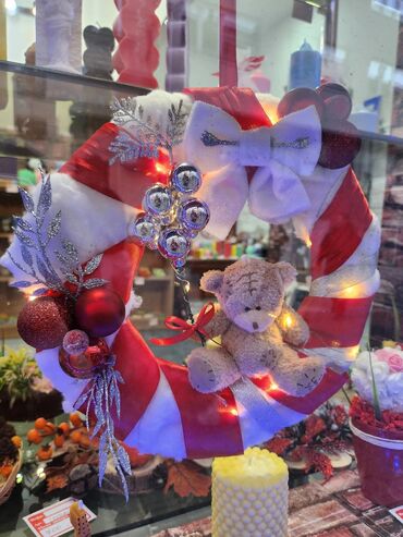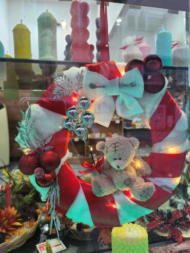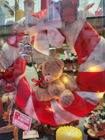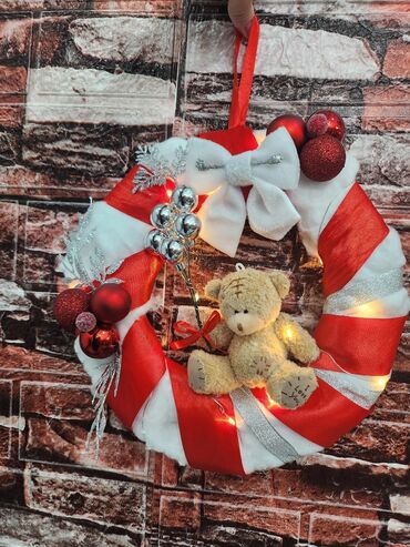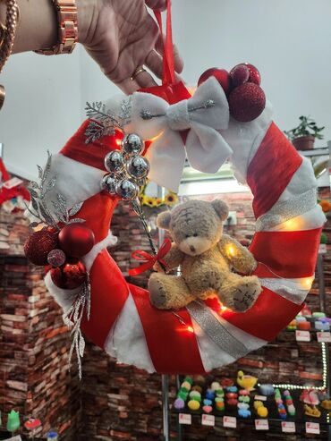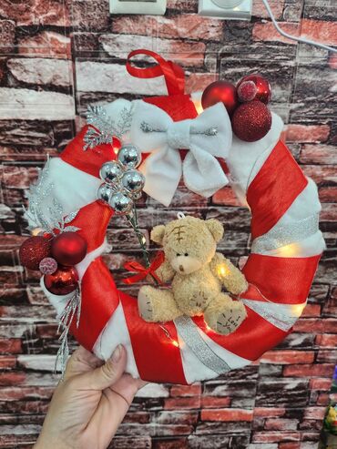 Novogodišnji/dekorativni venac sa plišanim medom i LED osvetljenjem.