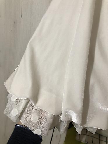 Dečija haljina sa tufnama - Boja: nežna krem/bež osnova sa sitnim crnim tufnama - Kroj: A-linija sa volanom pri dnu za blagi “ruffle” efekat - Rukavi: dugi, providni od tila sa istim tufnastim dez...