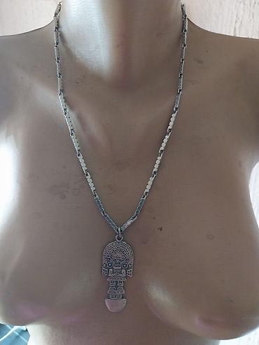 - Dužina: duga ogrlica, privezak pada ispod ključne kosti (vidljivo na fotografiji)