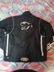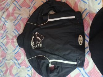Jakna je crne boje sa belim detaljima, kvalitetan materijal, udobna i idealna za vožnju motora.
