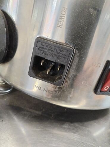 Napomena: na dnu uređaja nalaze se fabričke oznake „CHOCOLATE FOUNTAIN, MODEL NO. D20099, 230V 50Hz 230W, CE, Made in China“. Uređaj ima odvojene prekidače „ON/OFF“ i označen priključak „POWER“.