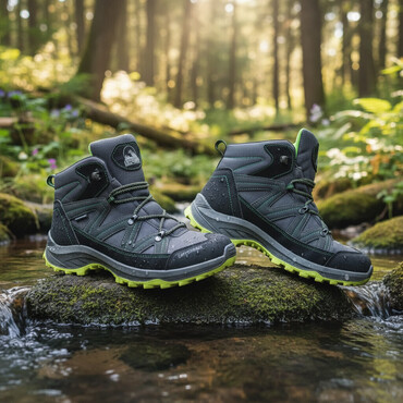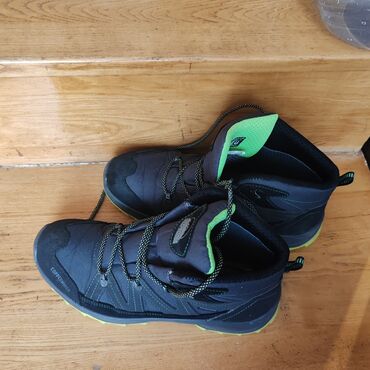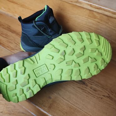 Dečje zimske vodootporne cipele gaziste 18,5cm Kratko nosene,par puta. - Brend: Coperinner (logo na jeziku). - Boja: tamnosiva sa limeta‑zelenim detaljima i svetlozelenim đonom. - Vodoodb...