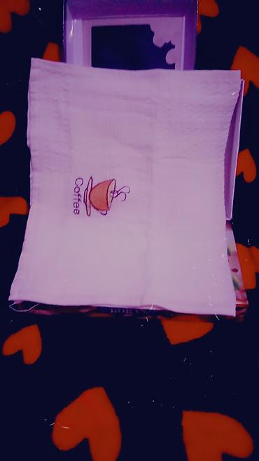 - Dizajn: vezeni motivi šoljica kafe i natpisi (Coffee, Latte, Espresso i dr.).
