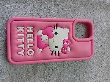 - Silikonska 3D Hello Kitty, pink boje, sa izdignutim slovima i motivom; zadebljani rubovi i podignut okvir oko kamere.