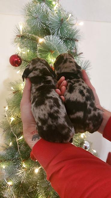 - Štenci su prikazani na fotografijama, sa izrazitim, retkim merle uzorkom.Stenci imaju sada 2 nedelje i spremni su za rezervaciju.Moze dodatne slike i snimci da se posalju pre rezervacije.
