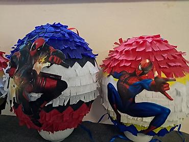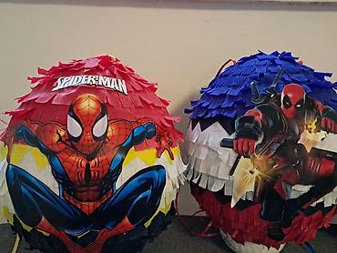 - Ručno izrađene, okrugle pinjate sa likovima Spider‑Mana i Deadpoola