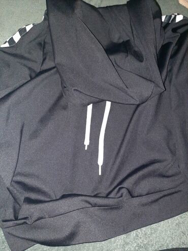 Crni dvodelni sportski komplet (dukserica + donji deo) - Materijal: mekana pamučna trenerka sa dodatkom elastina za udobnost i slobodu pokreta - Dizajn: crna osnova sa tri bele pruge duž rukava i ...3 300 RSD