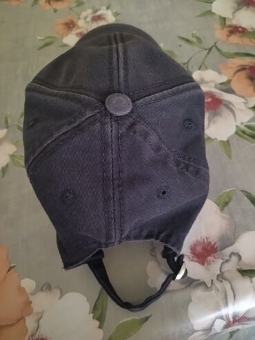 Plava kačket kapa sa šljokicama/imitacijom kristala i natpisom “COOL”. - Materijal: 100% pamuk (etiketa prikazana), Made in China. - Boja: svetloplava sa žutim ventilacionim rupicama i narandžastim...
