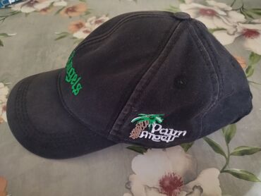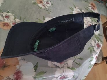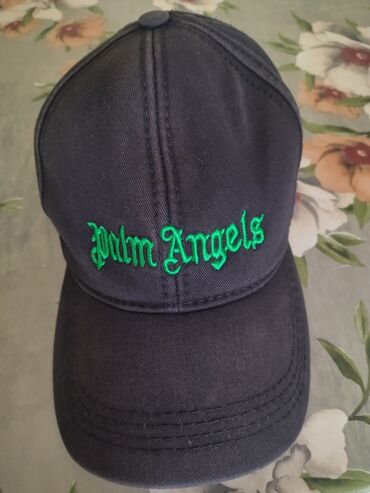 Druga veličinaUniseks bejzbol kapa u tamnosivoj boji, izrađena od pamuka, sa zakrivljenim vrhom. Na prednjoj strani kape je zeleni vez "Palm Angels" u stilizovanom fontu. Kapa ima klasičan šestodelni dizajn sa dugmetom na vrhu i podesivom trakom pozadi za udobno pristajanje. Idealna je za svakodnevno nošenje i sportske aktivnosti, pružajući zaštitu od sunca. Odličan izbor za one koji traže moderan i praktičan dodatak.