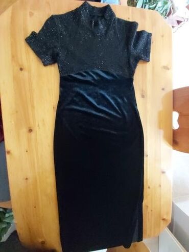 Elegantna crna večernja haljina pišana .Unisex Vel.Tegli se.Lep kvalitetan plis koji lepo pada.Tegljiv.