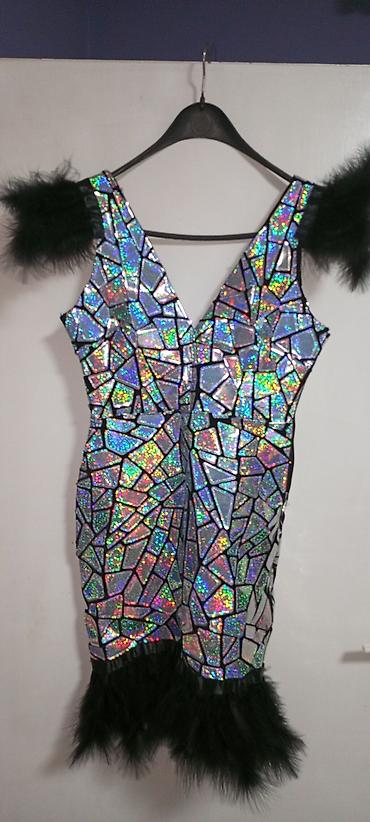 - Materijal: elastična podloga + dekorativne hologramske aplikacije i perje/veštačko krzno na porubu