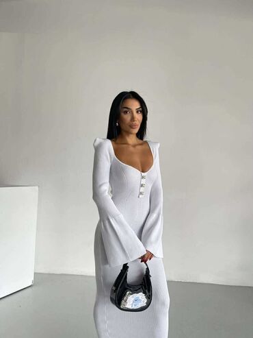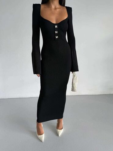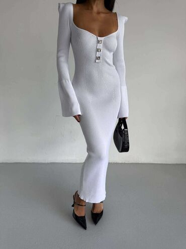 Elegantna rebrasta midi haljina sa dugim rukavima