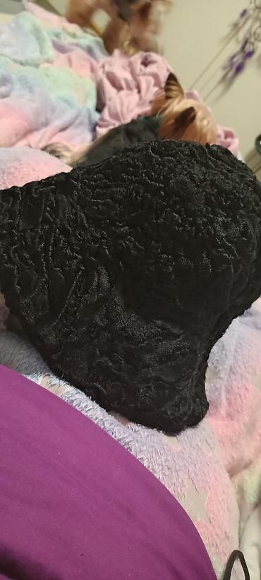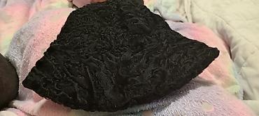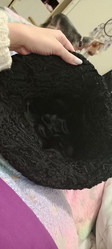 Crni ženski šešir Astragan prava vuna M veličina – bucket/fisherman model od mekane, reljefne tkanine sa “kovrdžavom” teksturom. Klasična crna boja, blago spušten obod koji štiti lice i daje elegantnu siluetu. Unutrašnjost je podstavljena glatkom satenskom/postavnom tkaninom za udobno nošenje i lakše klizanje preko kose. Fleksibilan, prilagođava se glavi i lepo stoji i na puštenoj kosi i na frizurama. Idealno za jesen/zimu, gradske kombinacije i chic izgled. Udoban, topao i lako se uklapa uz kapute, puf jakne i pletene komade.