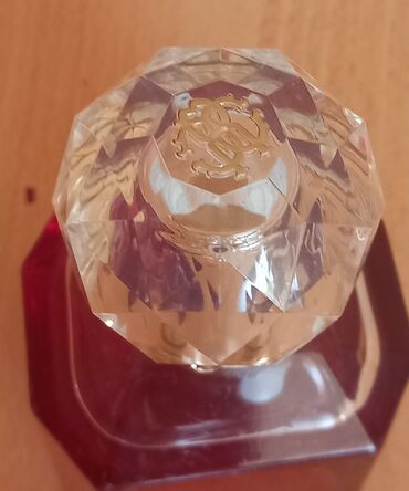 - Boca: osmostranični stakleni flakon sa gradijentom crvene boje i kristalnim čepom sa zlatnim detaljima i RC monogramom