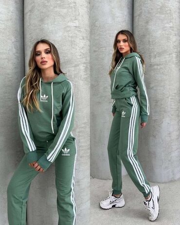 - Dizajn: tri karakteristične pruge duž rukava i nogavica; logo sprijeda na dukserici i na pantalonama.