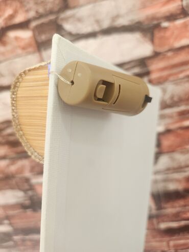- Rasveta: mikro LED lampice na tankoj žici raspoređene kroz aranžman; prekidač i kućište za baterije smešteni sa zadnje strane platna (ON/OFF klizač)
